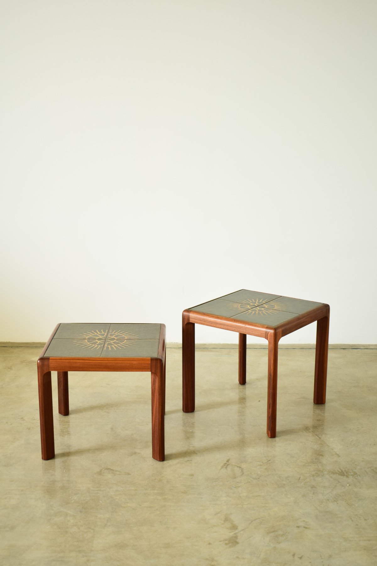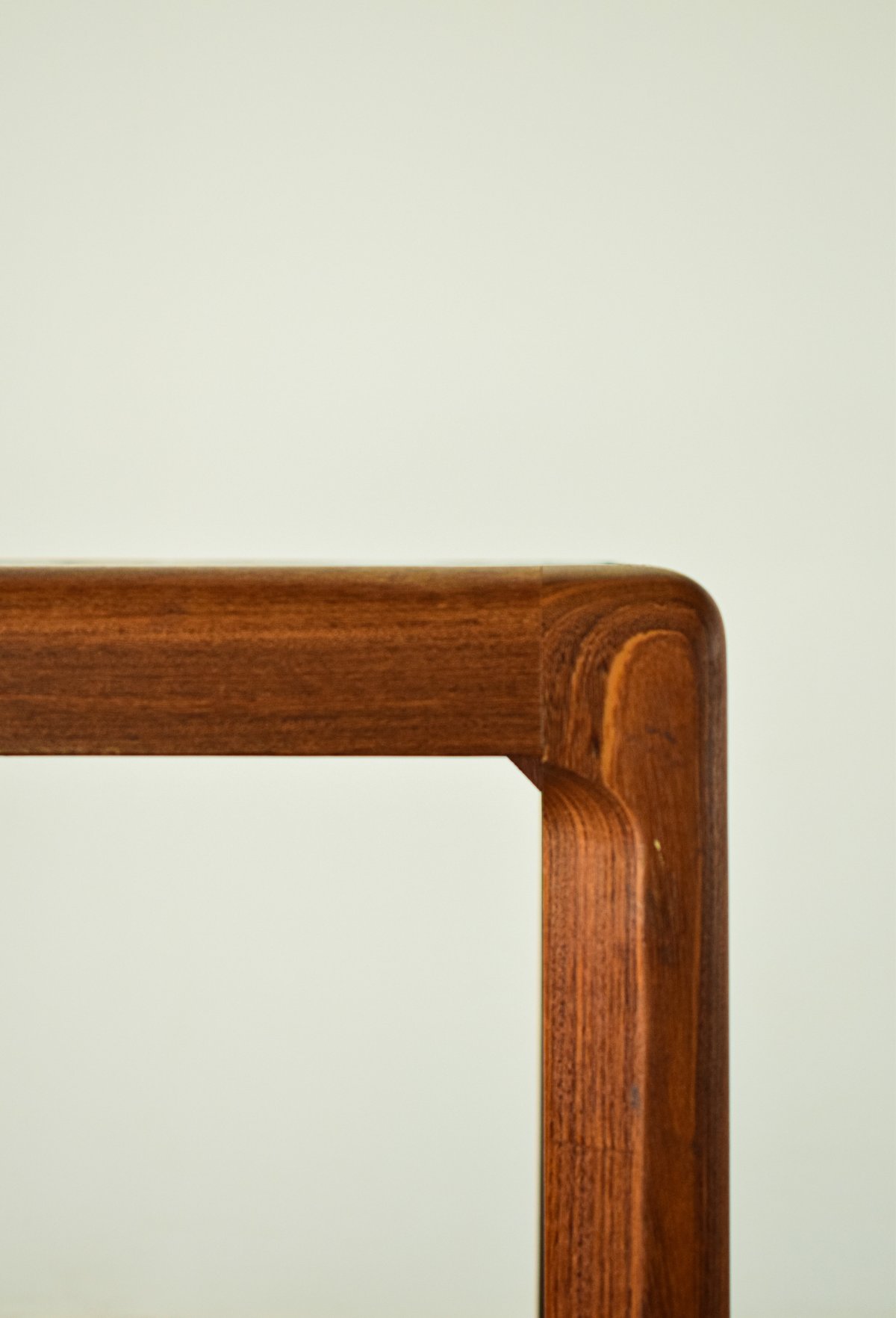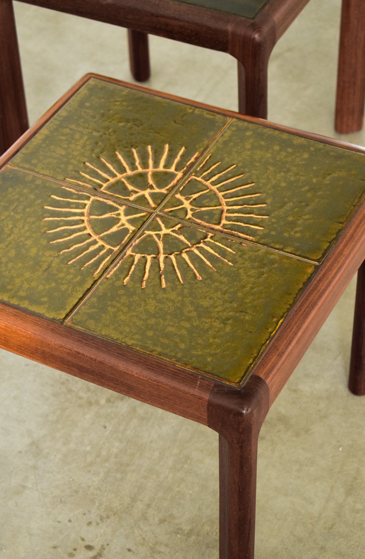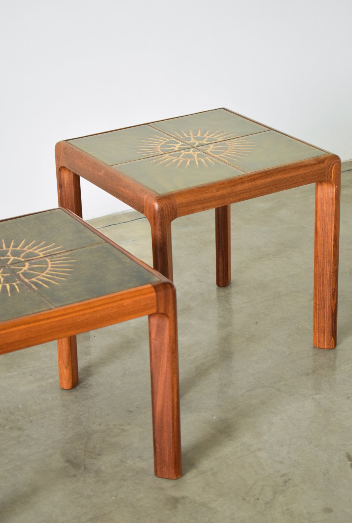 Square teak coffee table with dark green cera-mic tiled top. Founded in 1953, the company was renowned for its range of high-quality enfilades, tables and other storage furniture, and for inven-ting the concept of custom-made dining sets.