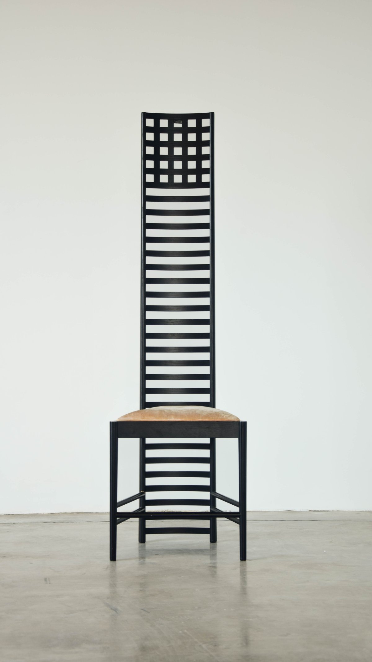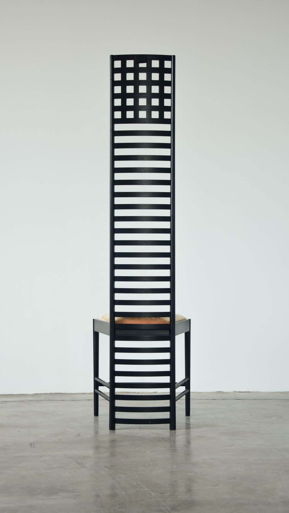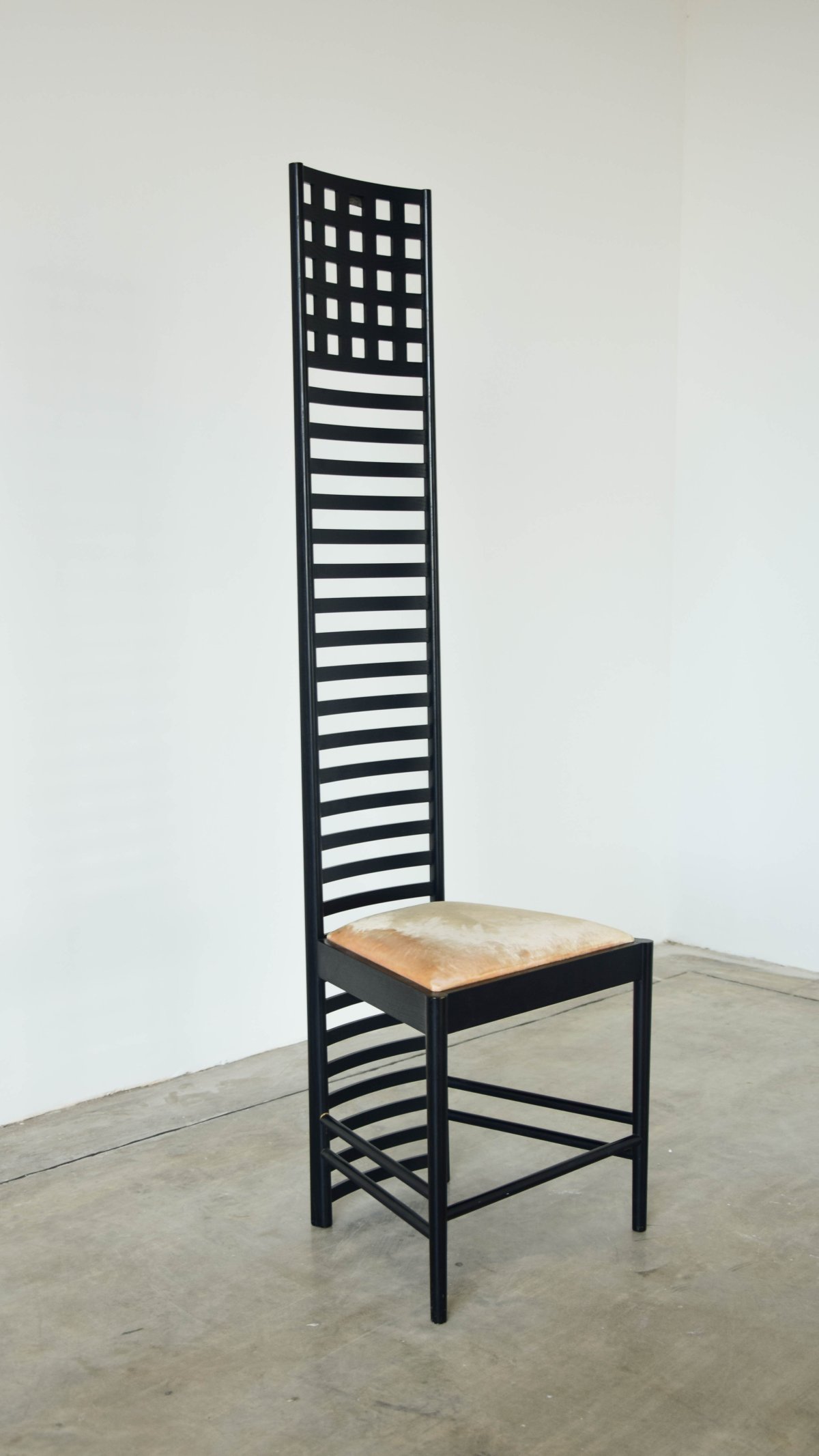 This solid wood chair is part of the furnishings for the “Hill House” private residence in Helenburgh, Scotland. Its geometric, linear form evokes the minimalism and abstract graphics of Japanese design.