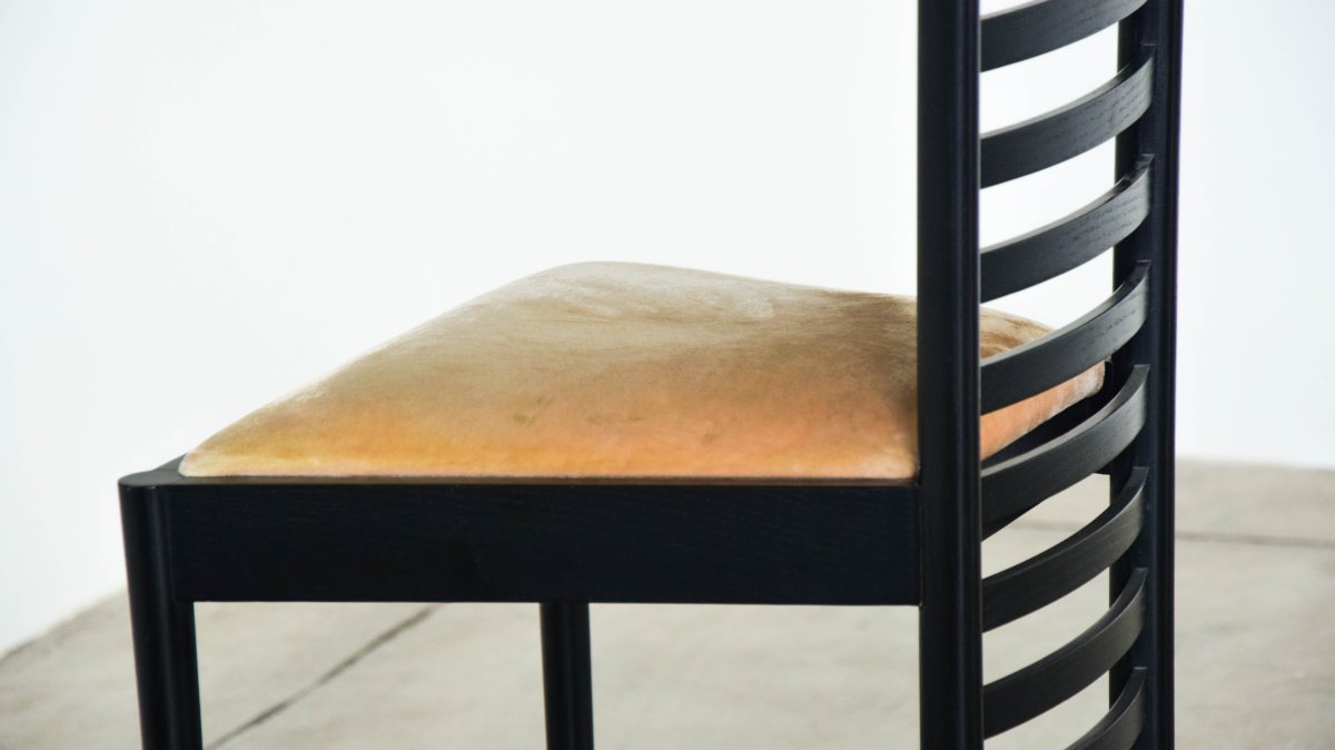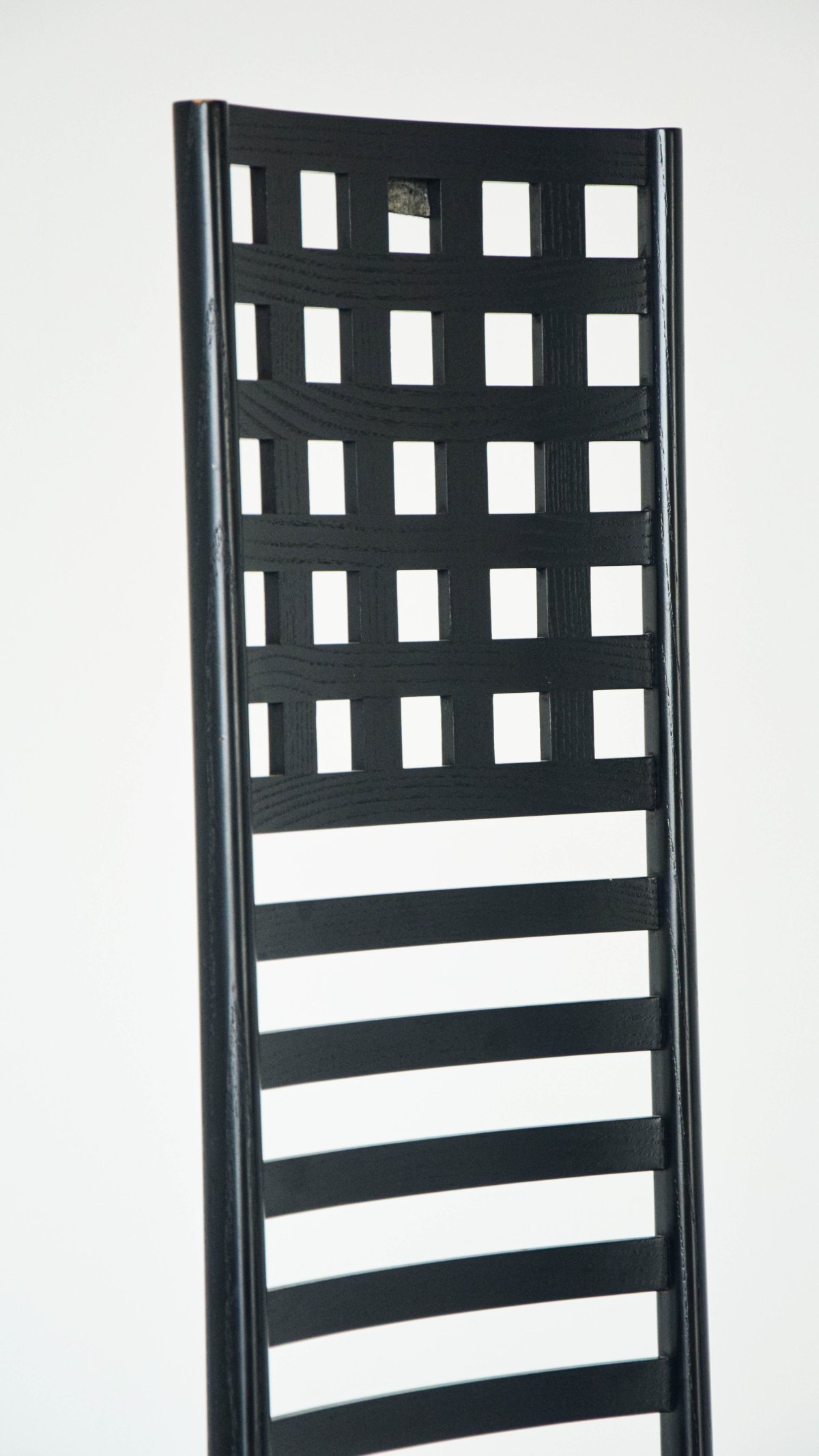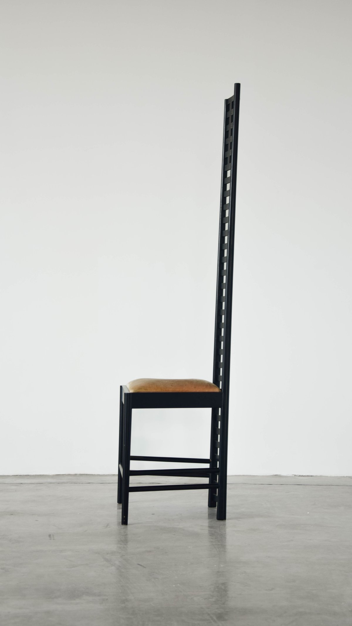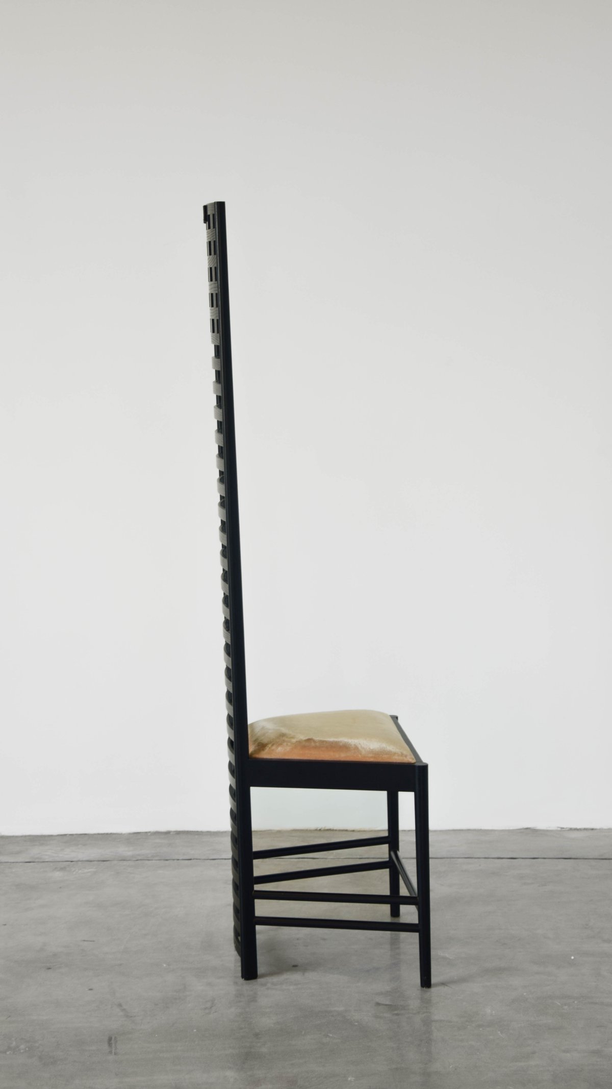 This solid wood chair is part of the furnishings for the “Hill House” private residence in Helenburgh, Scotland. Its geometric, linear form evokes the minimalism and abstract graphics of Japanese design.