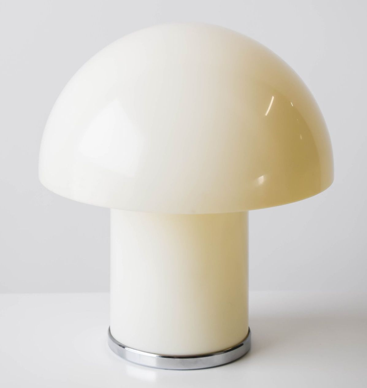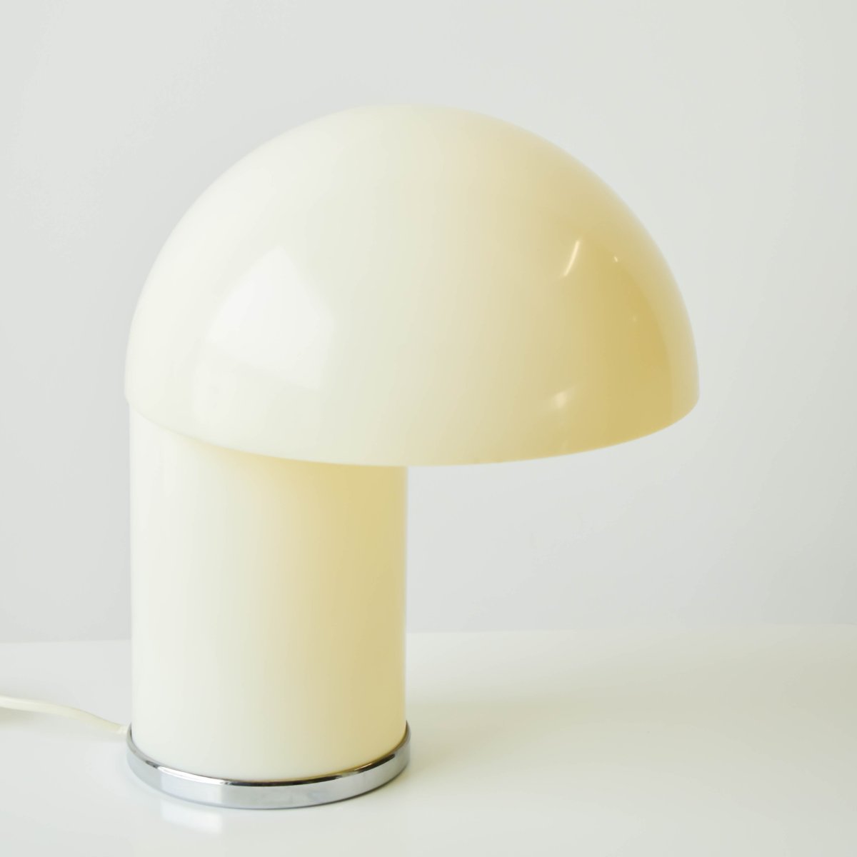 Very rare table lamp Leila was designed by Verner Panton and Marcello Siard for Collezioni Longato Padova in Italy in the 1968. The lampshade merges with the trunk in a special way when it is lit , the metal chromed base.
